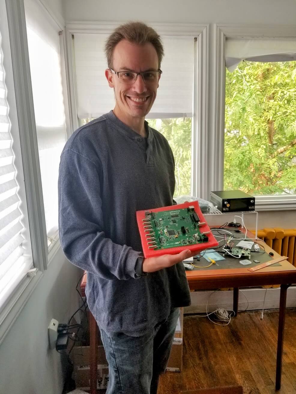 At the moment the picture was taken, I was giddy and nervous. Anxious to test my board. When designing a complex board from scratch, there are so many ways to make mistakes big and small. And every problem would need to be understood, analyzed and fixed. Soon, I'd plug in the board and start plugging away at its problems. But for a moment, I got to take a breath and simply look at what I'd built.